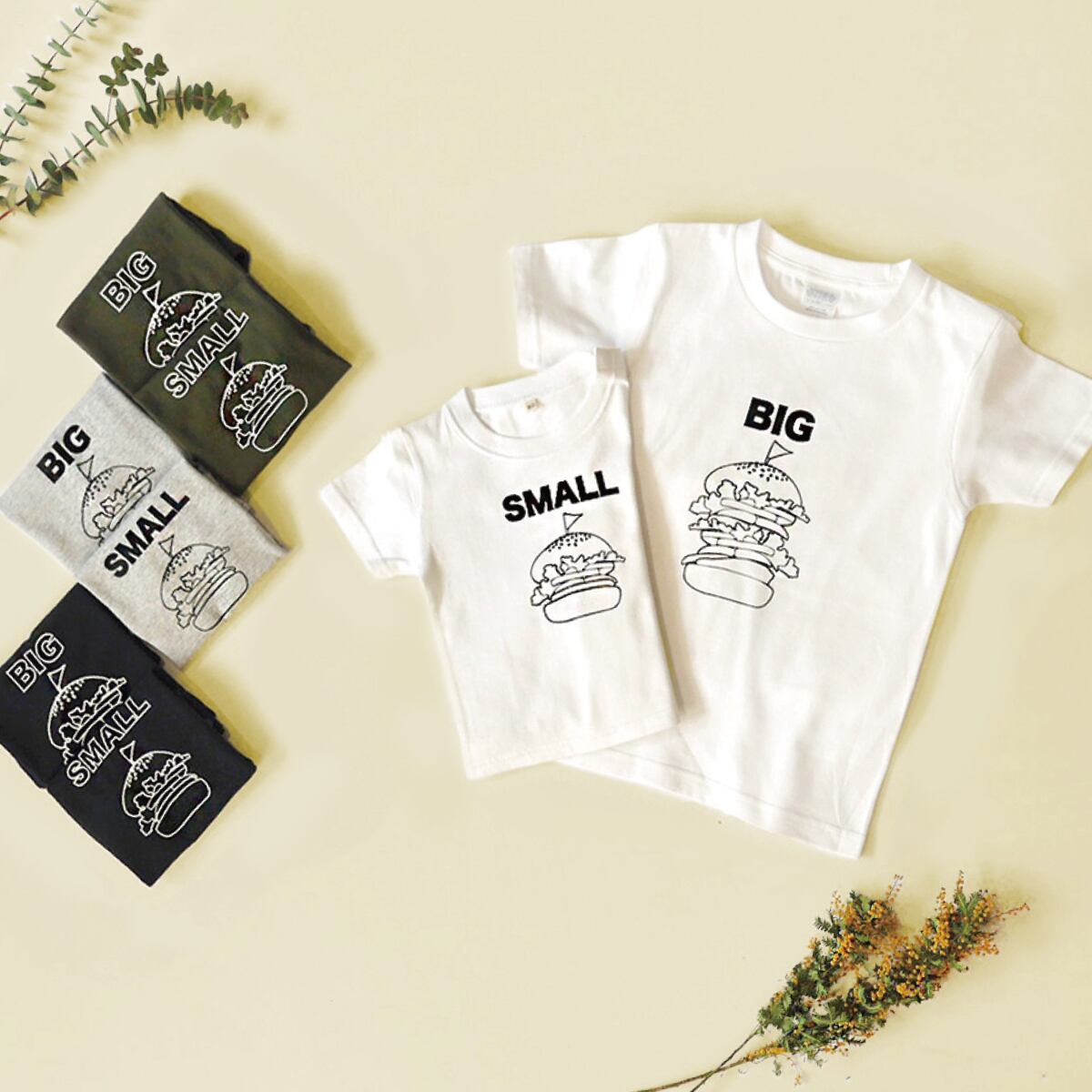 キッズおそろいTシャツ2枚セット /ハンバ ーガー SMALL×BIG プリント/出産祝い